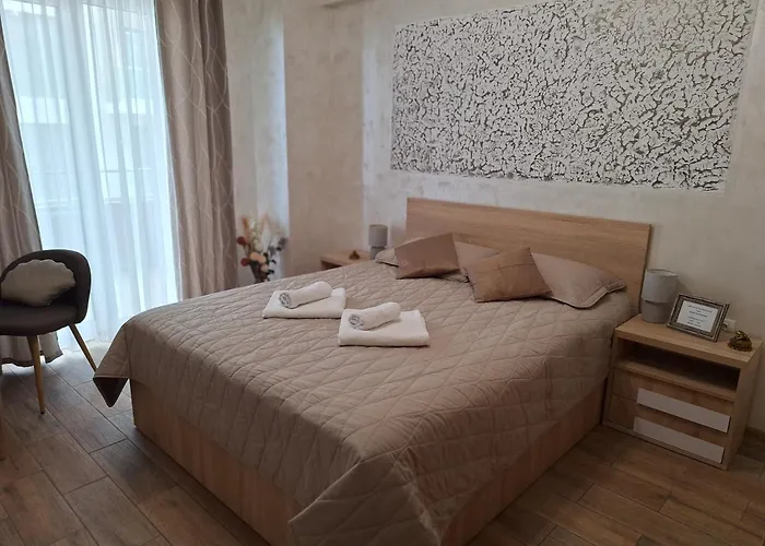 Club Crazybeach은 0.8km이며 Fratelli Beach & Club는 0.5km 정도 떨어져 있습니다. 시내 중심부는 2km 내에 떨어져 있습니다. 350미터 거리 내에 위치한 Boca il ristorante, Fratelli Beach&Club는 다양한 요리를 제공합니다.Ayzam 아파트에서 가까운 도보 거리에 Ego Club Mamaia이 있습니다.